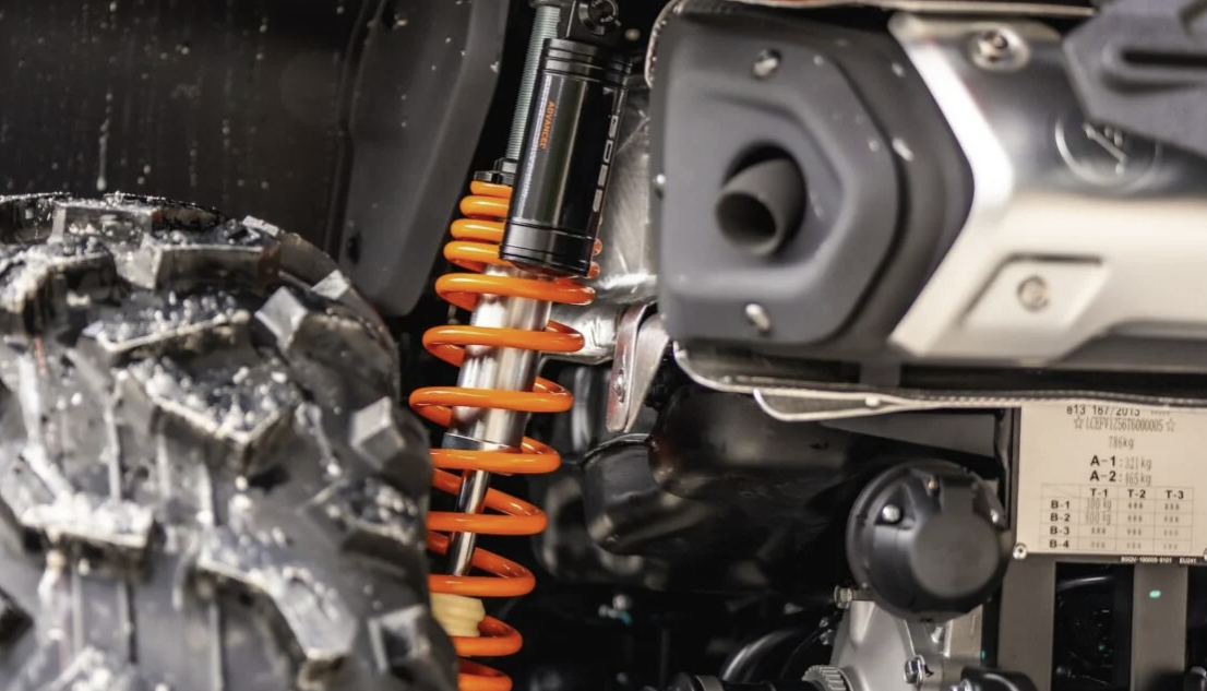 Plne nastaviteľné nitrogénové tlmiče (tuhosť pružiny, útlm, odskok) novej generácie so zdvihom 230 mm vpredu a 236 mm vzadu.